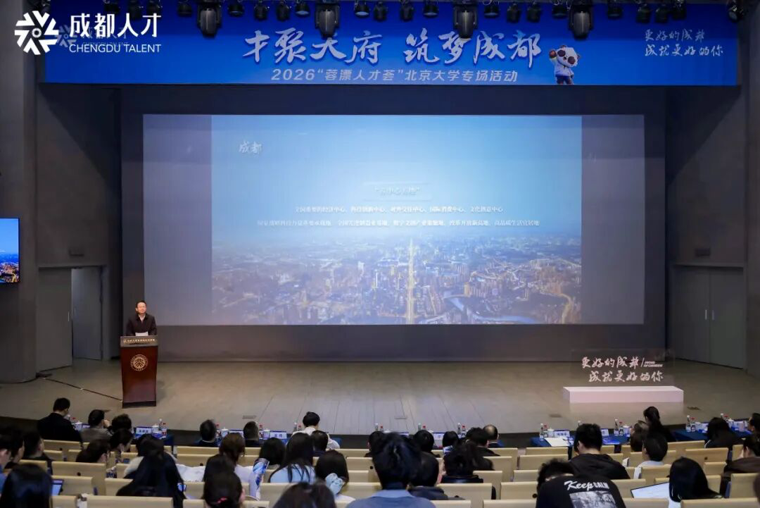 活动以“才聚天府·筑梦成都”为主题,通过专场推介、人才分享、线下双选等多元环节,全方位展示成都市人才发展价值生态,向北大学子发出“蓉漂”之约,诚邀青年学子亲身感受“奋进中的创新之城”—成都。